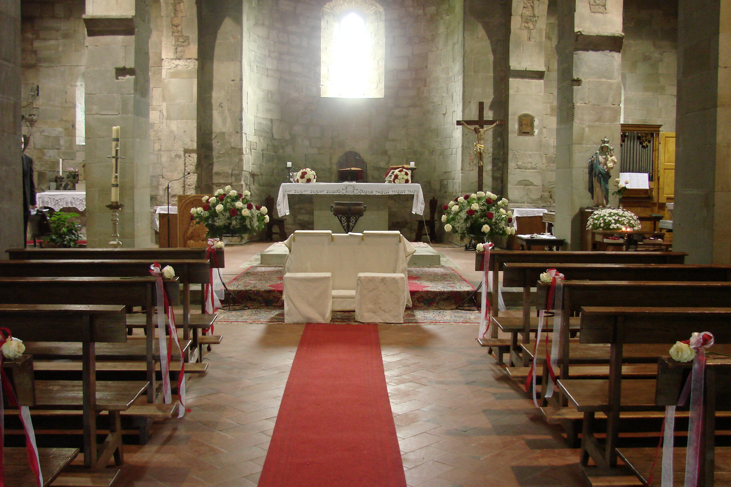 The marriage of Elisa and Leonardo was held in Chianti, in a farm house called Perlamora, a paradise surrounded by vineyards, olive groves and in front of a breathtaking valley. The religious ceremony, took place in the Romanesque church of Gaville.